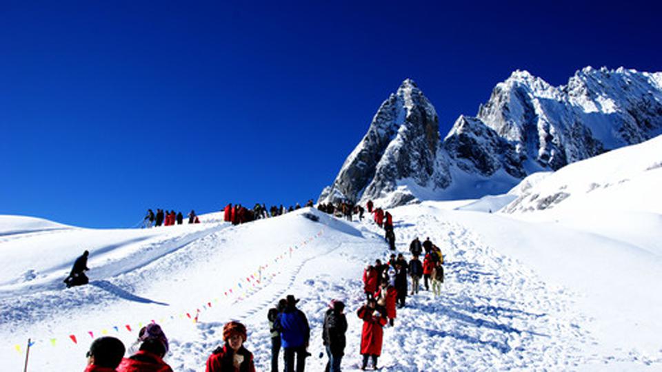 ▶玉龙雪山:冰川大索道(游览时间约120分左右),乘冰川大索道从海拔3000米的草甸出发,穿越高大挺拔的各种松林杉树,到达海拔4506米高的雪山冰川,欣赏大自然恩赐的美景(游览约90分钟,不含排队及乘车时间)。
